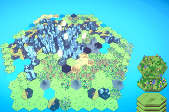 Different nature tiles interact with each other. For example, group together forest tiles to increase their power, place mountain tiles next to forests for a bonus, and keep desert tiles away from forests or water sources.